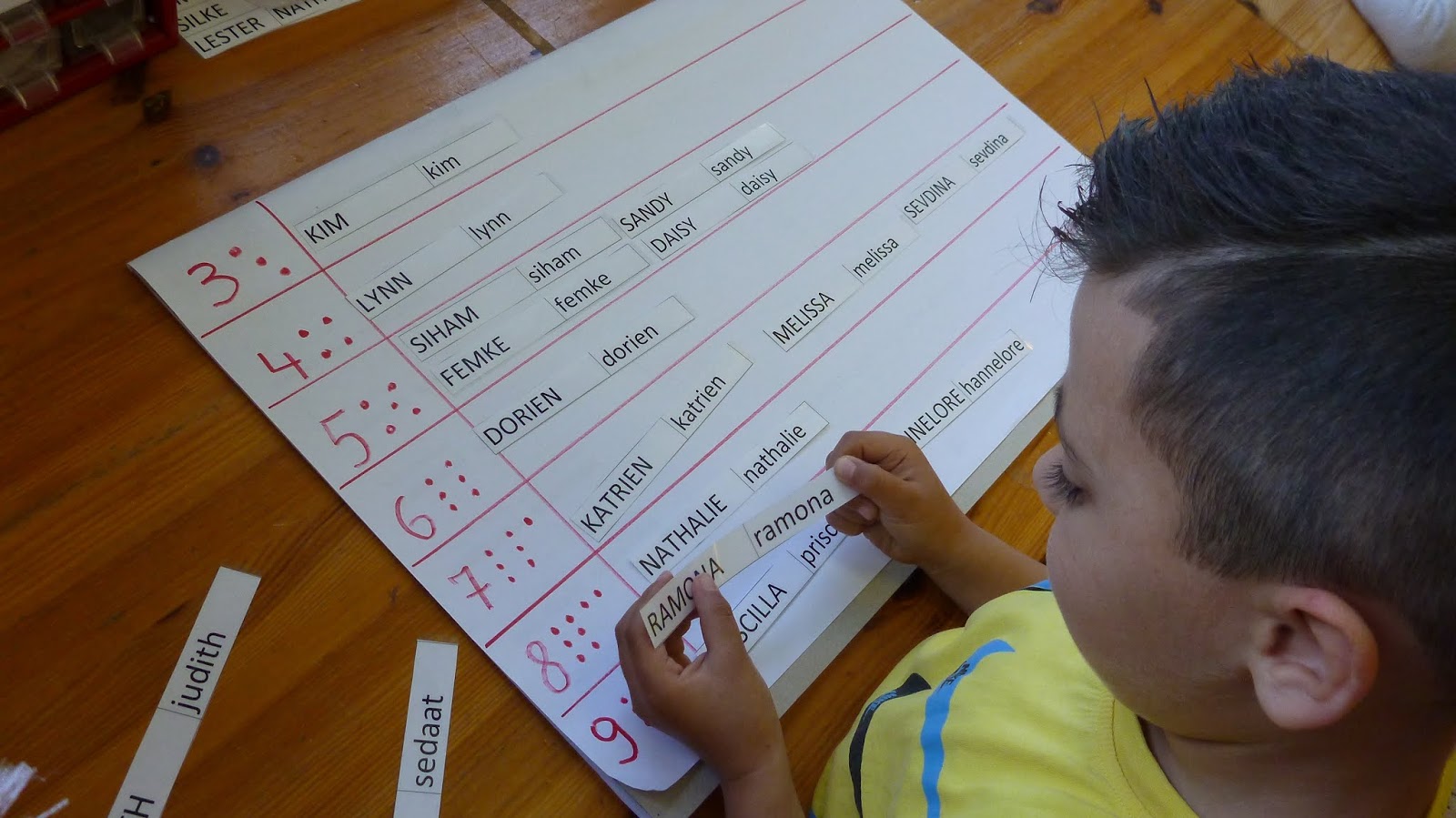 Letters tellen en de naam bij het juiste getalbeeld leggen.